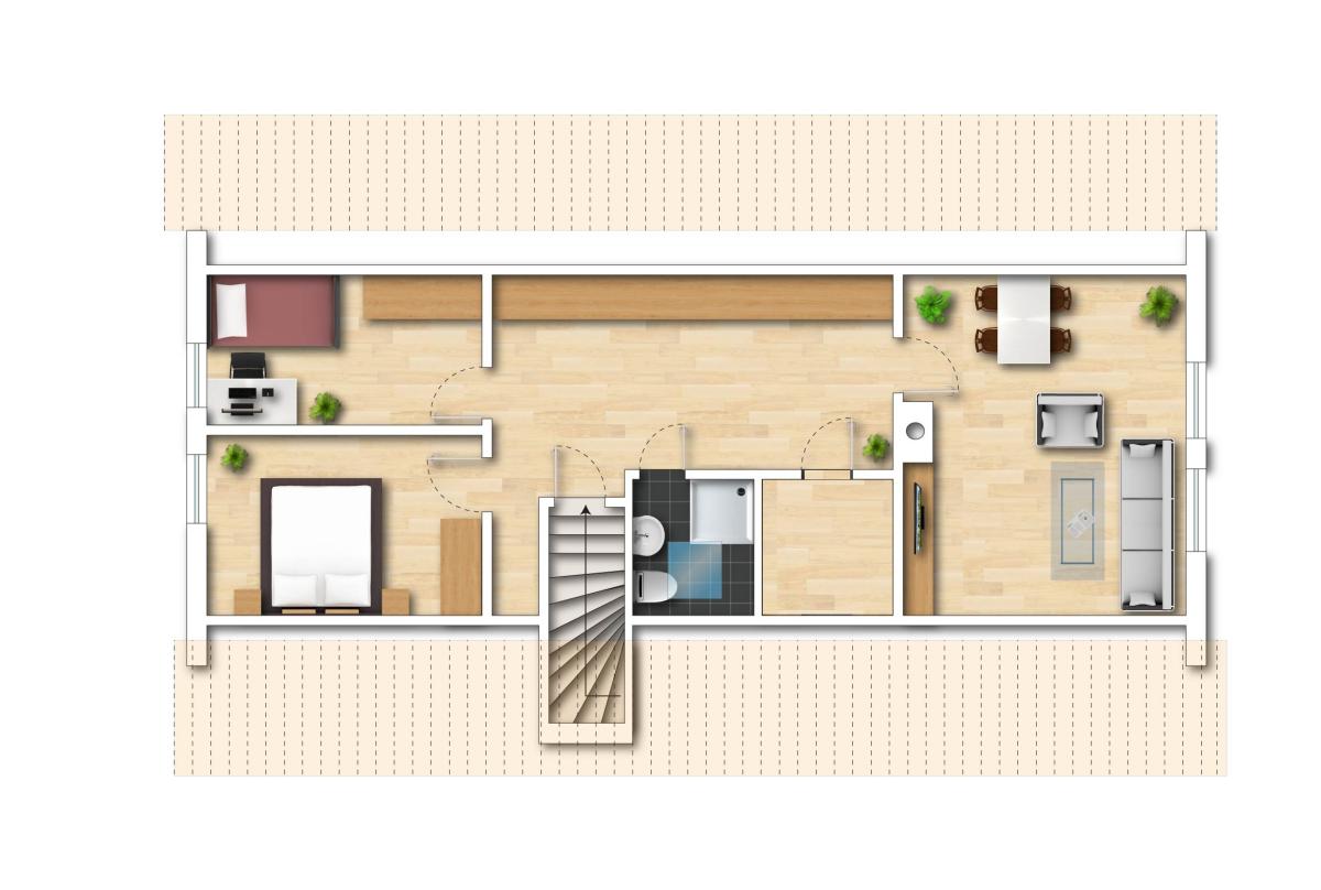 Die charakteristische gelbe, aus Holz bestehende Fassade besticht durch ihre weißen Fensterrahmen und lädt Ihre Besucher freundlich ein, das Haus zu erkunden.