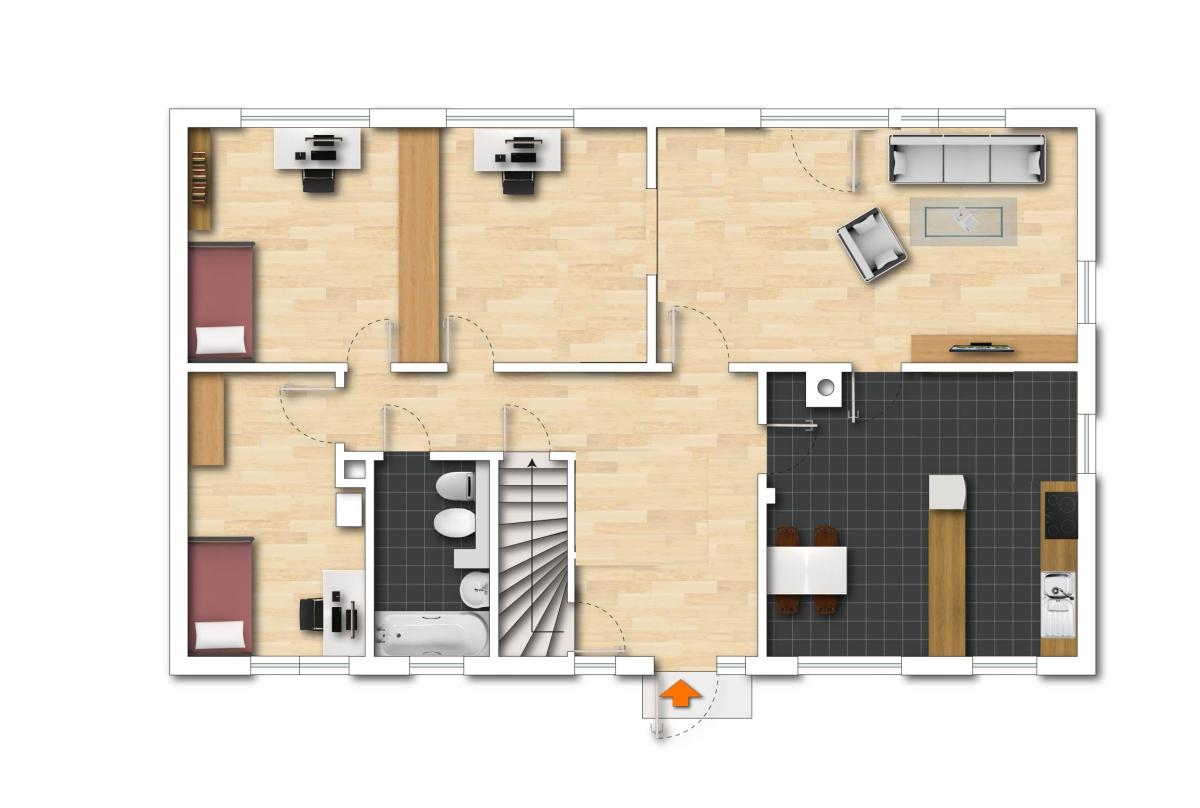 Drei weitere Zimmer bieten flexible Nutzungsmöglichkeiten - ob als ruhiges Schlafzimmer, Homeoffice oder Gästezimmer. Hier lässt sich der Grundriss ganz nach den individuellen Bedürfnissen Ihrer Familie gestalten.