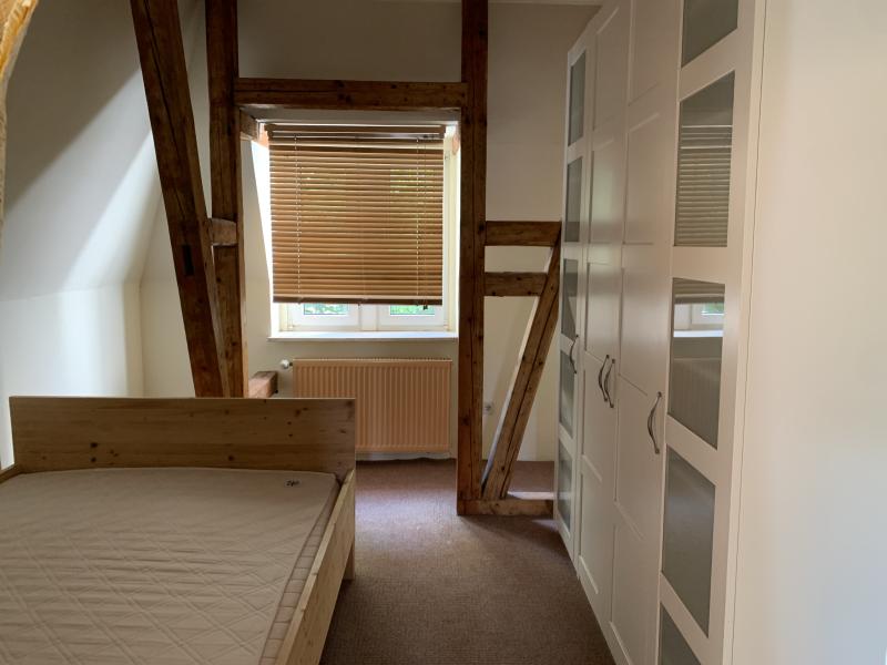Charme und Heimeligkeit gewinnen die Wohnungen vor allem durch die alten Fachwerkbalken, die für viel Flair sorgen.