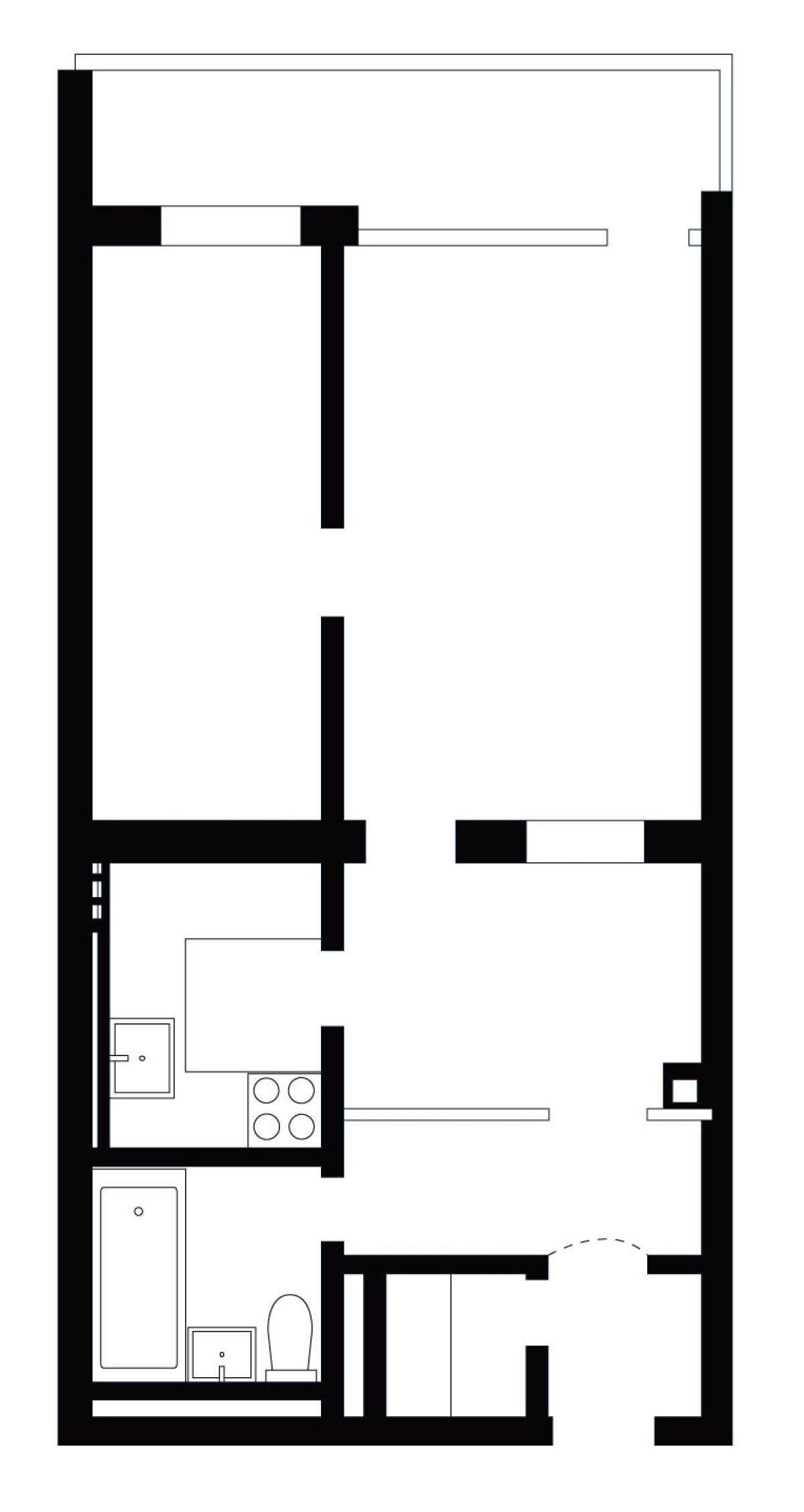 Die Wohnung ist gut geschnitten und dank der großen Fensterfronten sowie einer Glasabtrennung als Raumteiler angenehm hell. Wohn- und Essbereich sind voneinander getrennt und bieten dadurch eine klare Raumstruktur.