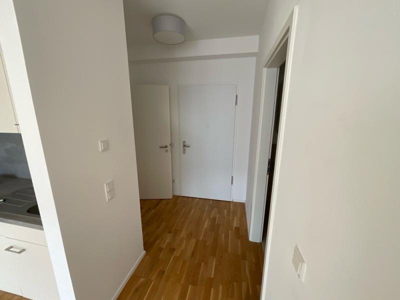 Direkt beim Betreten fällt auf, wie hell und einladend die Wohnung ist. Der Eingangsbereich bietet Platz für eine Garderobe.
