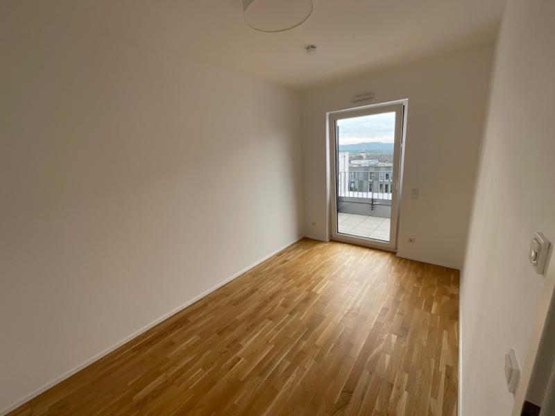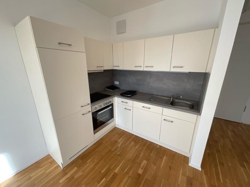 Das Herzstück der Wohnung ist eindeutig das Wohn- und Esszimmer. Auch eine schicke Küchenzeile im offenen Wohn- und Essbereich ist bereits vorhanden und lädt zu geselligen Kochabenden mit Freunden und der Familie ein. Das Schlafzimmer ist etwas kleiner geschnitten und bietet Platz für ein Bett und einen Kleiderschrank.