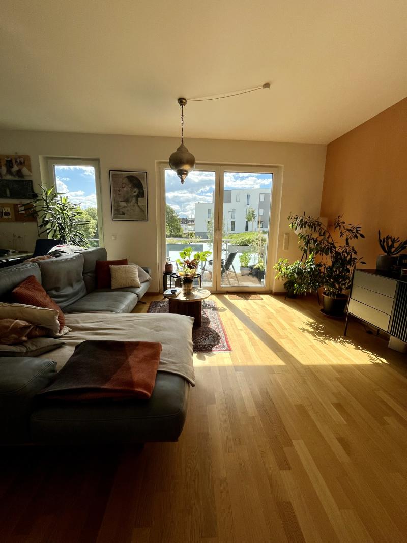 Geschmackvoller Designbelag schafft eine freundliche und einladende Raumatmosphäre. Der angrenzende Balkon im Hochparterre erweitert Ihren Wohnraum zusätzlich nach außen und stellt definitiv ein Plus an Wohnqualität dar. Loungemöbel, Grill und Grünpflanzen finden hier ein schönes Plätzchen und Sie einen Ort zum Entspannen und Wohlfühlen.