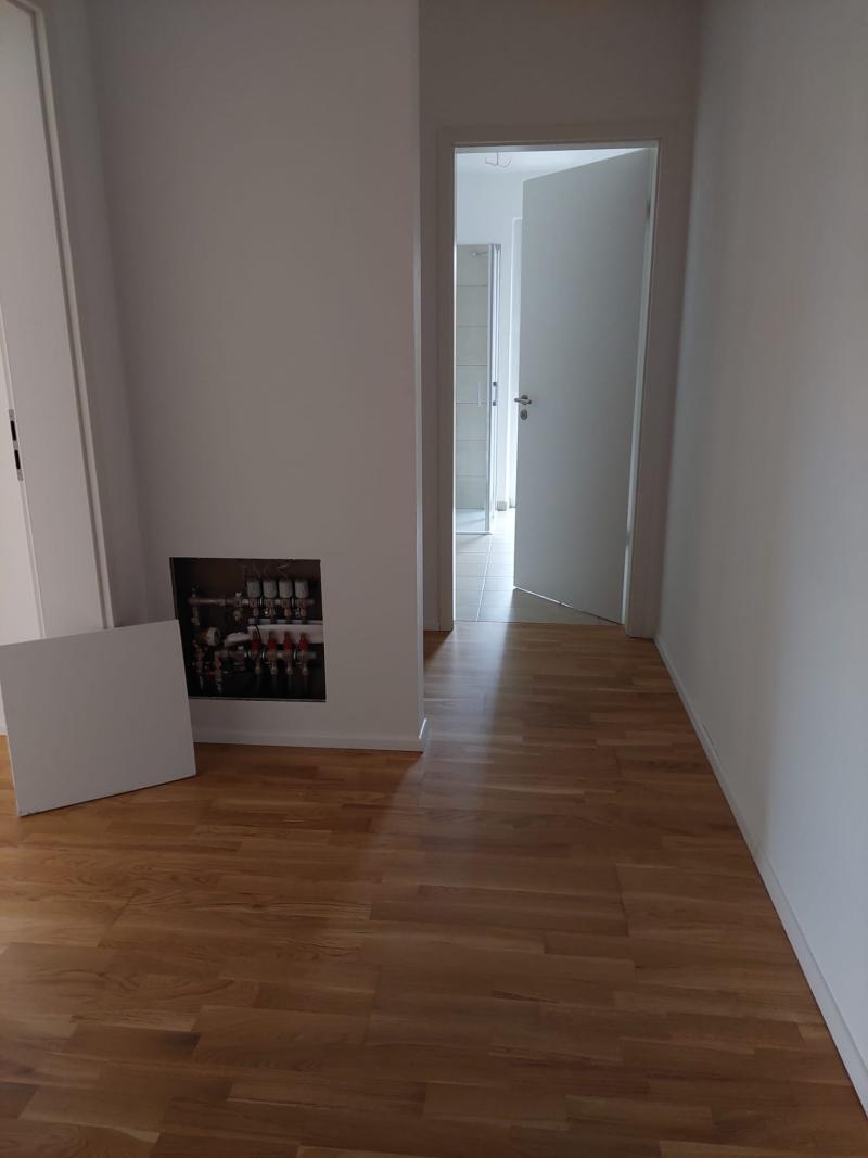 Direkt beim Betreten fällt auf, wie hell und einladend die Wohnung ist. Der Eingangsbereich bietet Platz für eine Garderobe.