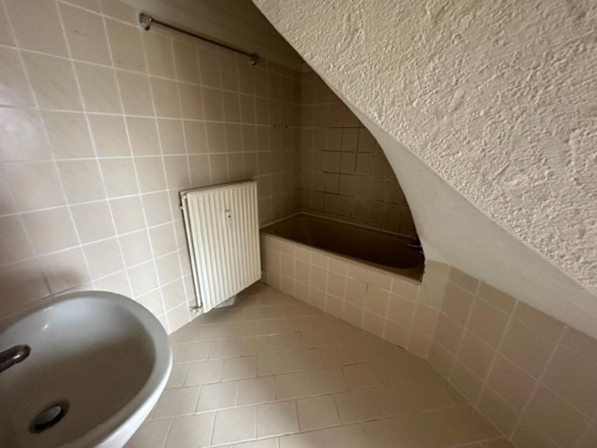 Das Tageslichtbad ist mit einer Badewanne und einem Waschbecken ausgestattet, das WC ist separat.