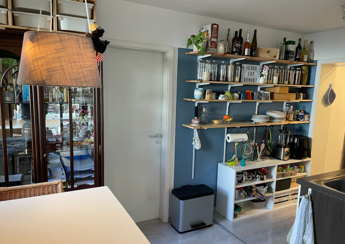 Sie betreten die Wohnung über einen kleinen Flur. Dieser führt Sie direkt in das Herzstück der Wohnung: den offenen Wohn- und Essbereich mit integrierter Küchenzeile. Diese kann nach individueller Rücksprache von den Vormietern übernommen werden. Besonders praktisch ist der an die Küchenzeile angrenzende Abstellraum. Hier befindet sich weitere Abstellfläche für Lebensmittelvorräte & Co.