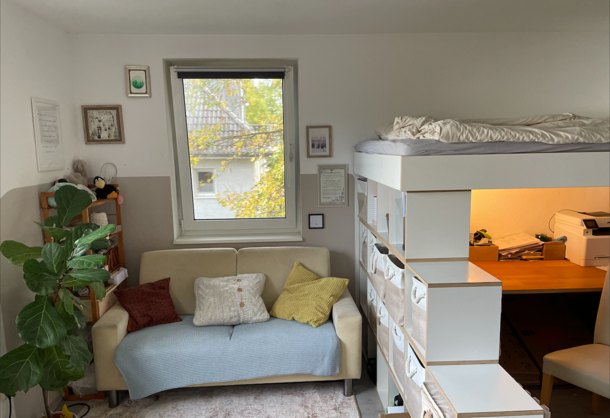 Den Mieter*innen stehen zur gemeinsamen Nutzung ein Trockenraum zur Verfügung. Ihre Waschmaschine können Sie im Badezimmer anschließen.