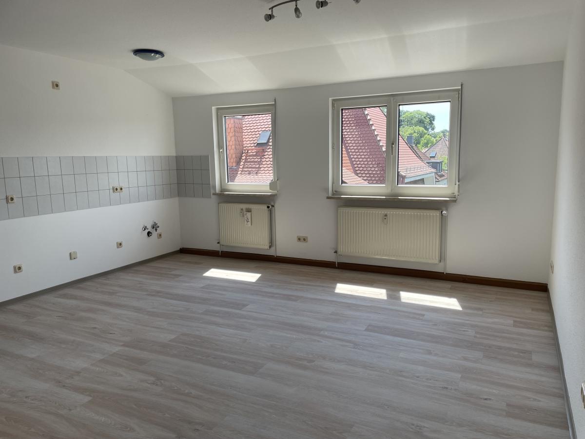 Ein Flur führt Sie in die Wohnung. Das Zimmer ist schön hell und bietet Platz für einen Wohn- und Schlafbereich. Eine Küchenzeile ist nicht vorhanden, diese können Sie nach individuellen Vorstellung gestalten.