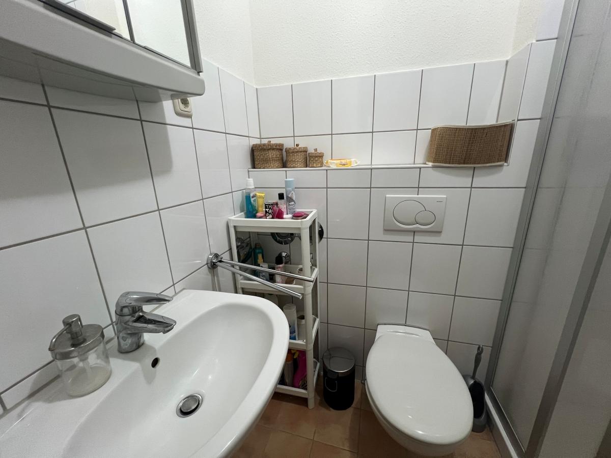Die Küche hat ein Fenster und befindet sich in einer separaten Nische, die notwendigen Einbauten sind bereits vorhanden und können sofort genutzt werden. Das moderne Badezimmer bietet eine Dusche, ein Waschbecken sowie ein WC.