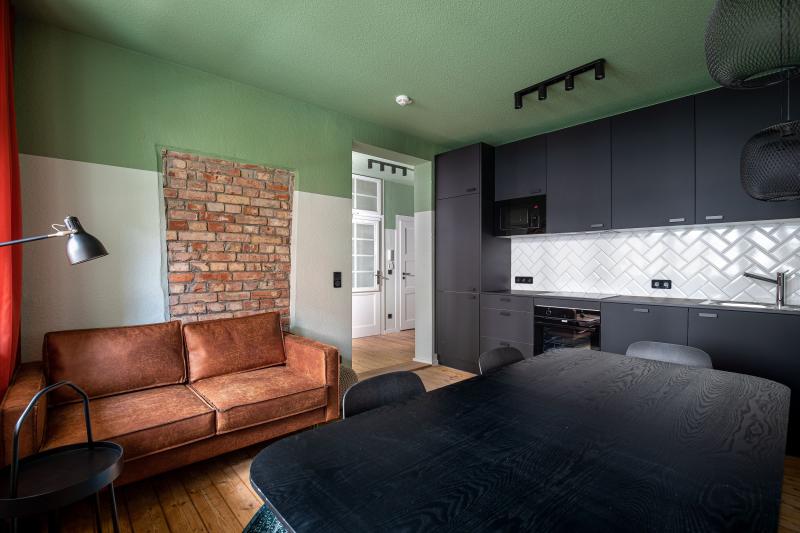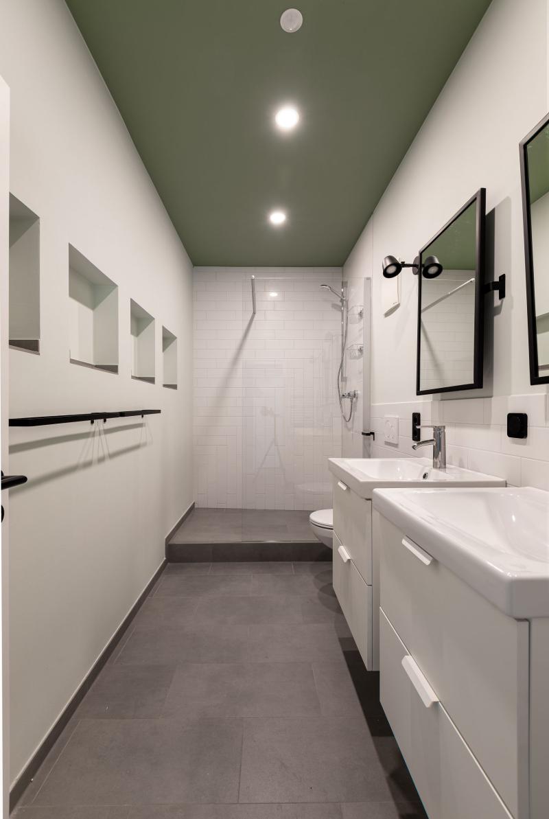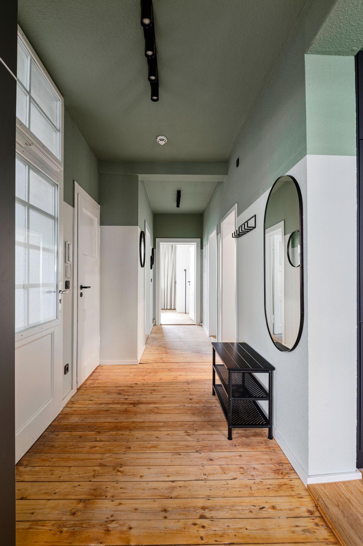 Ausstattungsmerkmale: In einem denkmalgeschützten Altbau, Baujahr 1900, sind 2022 diese exklusiven Studierendenapartments mit besonders viel Stil und Charisma entstanden. Jede Wohnung verfügt über eine hochwertige Gemeinschaftsküche mit Sitzgruppe und lädt zu gemeinsamen Kochabenden ein, auch ein wandhängender TV ist bereits vorhanden. In den Fluren befinden sich Garderoben und Sitzbänke. Die Badezimmer jeder Etage bieten 2 Waschbecken mit Spiegel und Unterschränken, ein wandhängendes WC, Ablageflächen für Kosmetika & Co. sowie bodentiefe Walk-In-Duschen mit verglasten Duschkabinen. Zeitgemäße Akzente in den Trendfarben Schwarz, Weiß und Mintgrün spiegeln sich in den individuell gestalteten Gemeinschaftsräumen wider. Diverse Altbau-Elemente akzentuieren sich stilvoll in das moderne Gesamtbild der Wohnräume. In der Waschküche des Hauses stehen allen MieterInnen zur gemeinsamen Nutzung Waschmaschinen und Trockner zur Verfügung, auch ein praktischer Fahrradkeller ist vorhanden. Diverse Sitzmöbel im Garten laden zu entspannten WG-Abenden unter freiem Himmel ein.
