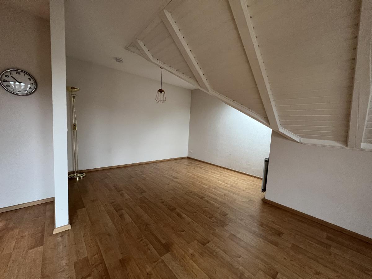 In der Wohnung wurde ein schicker Laminatboden verlegt. Dachschrägen sorgen für ein heimeliges Raumgefühl, ohne zu stören.