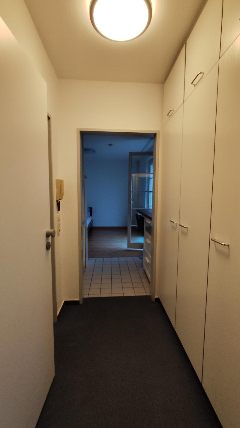 Ein kleiner Flur führt in die Wohnung. Durchdacht geplant: Hier befinden sich Einbauschränke, die für ausreichend Stauraum sorgen. Auch eine Pantry-Küche ist schon vorhanden und kann sofort von Ihnen genutzt werden.
