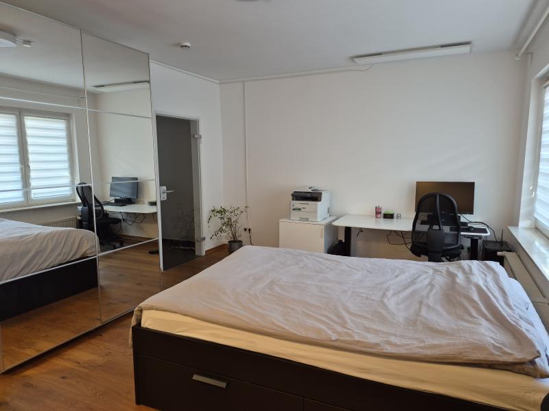 Das Wohn- und Schlafzimmer ist gemütlich und schön hell. Das in der Wohnung verlegte Parkett schafft ein freundliches und einladendes Raumklima. In einer räumlich abgetrennten Nische befindet sich eine Küchenzeile. Diese kann nach individuelle Rücksprache vom aktuellen Mieter übernommen werden.