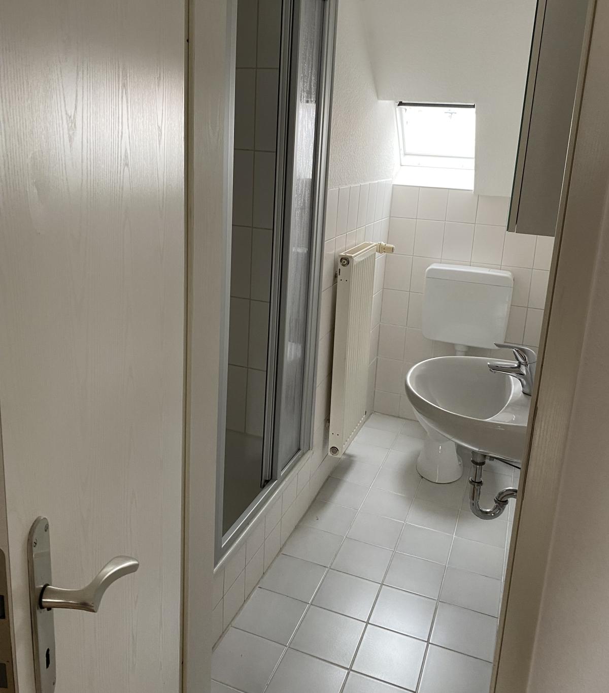 Das Tageslichtbad ist mit einer Dusche, einem Waschbecken und einem WC ausgestattet.