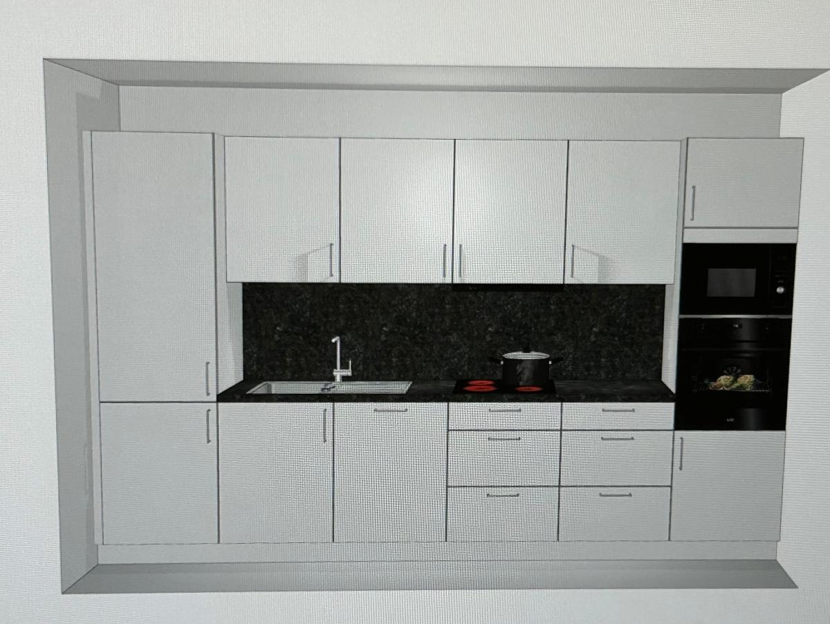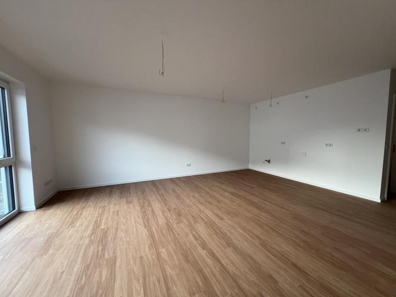 Wir beginnen den Rundgang im Eingangsbereich. Von hier aus führt ein Flur direkt in das Herzstück des Apartments, den offenen Wohn- und Essbereich. Hier können Sie sich über jede Menge Platz freuen. Eine moderne Küchenzeile wird in Kürze in den Wohnraum integriert. Von diesem Bereich aus betreten Sie den großzügigen Balkon. Gemütliche Abende unter freiem Himmel sind hier ebenso lohnenswert wie das sonntägliche Frühstück in der Sonne.