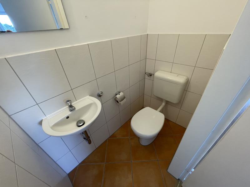 Das Badezimmer hat ebenfalls ein Fenster, regelmäßiges Lüften ist auch hier somit einfach. Eine Badewanne lädt zum Entspannen ein, weiterhin gibt es eine Dusche, ein Waschbecken und ein WC. Auch ein separates Gäste-WC ist vorhanden.