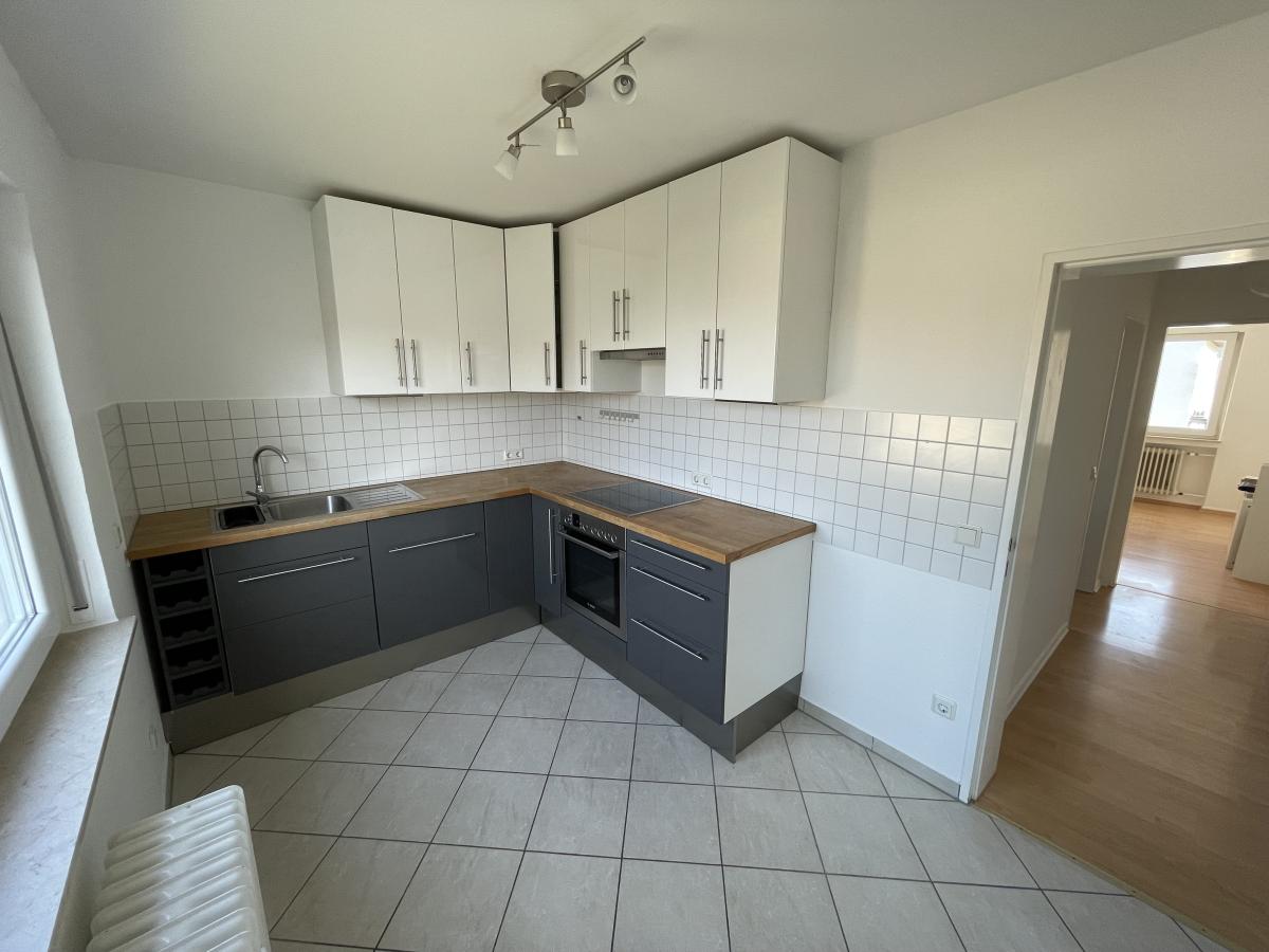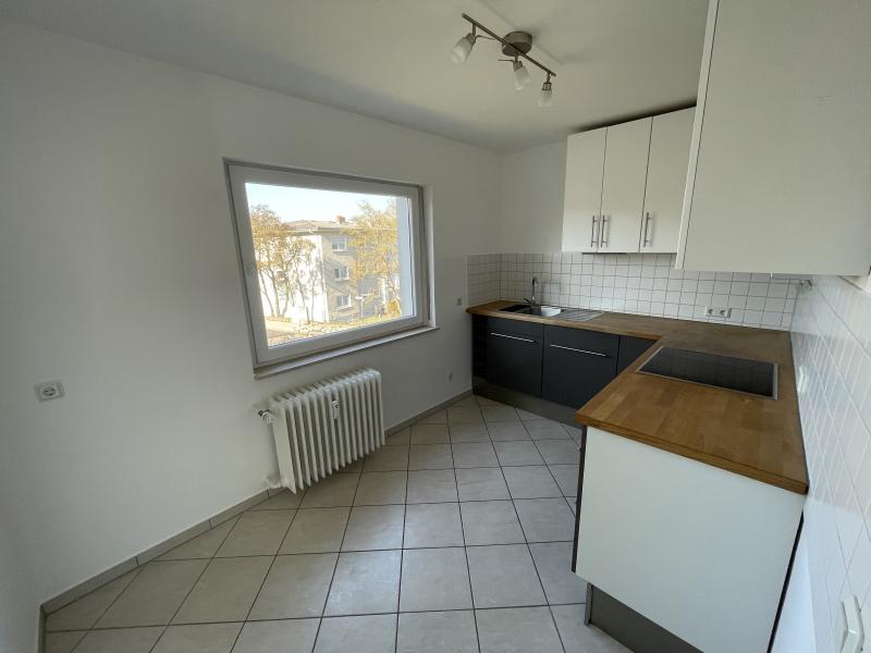 Die freundliche Helligkeit, die sich durch die ganze Wohnung zieht, setzt sich in der Küche fort. Auch diese verfügt über ein großes Fenster. Kücheneinbauten sind bereits vorhanden, so gibt es z.B. eine Spüle, einen Herd mit Dunstabzugshaube sowie einen Backofen, Unter- und Hängeschränke. Ein Kühlschrank ist nicht vorhanden.