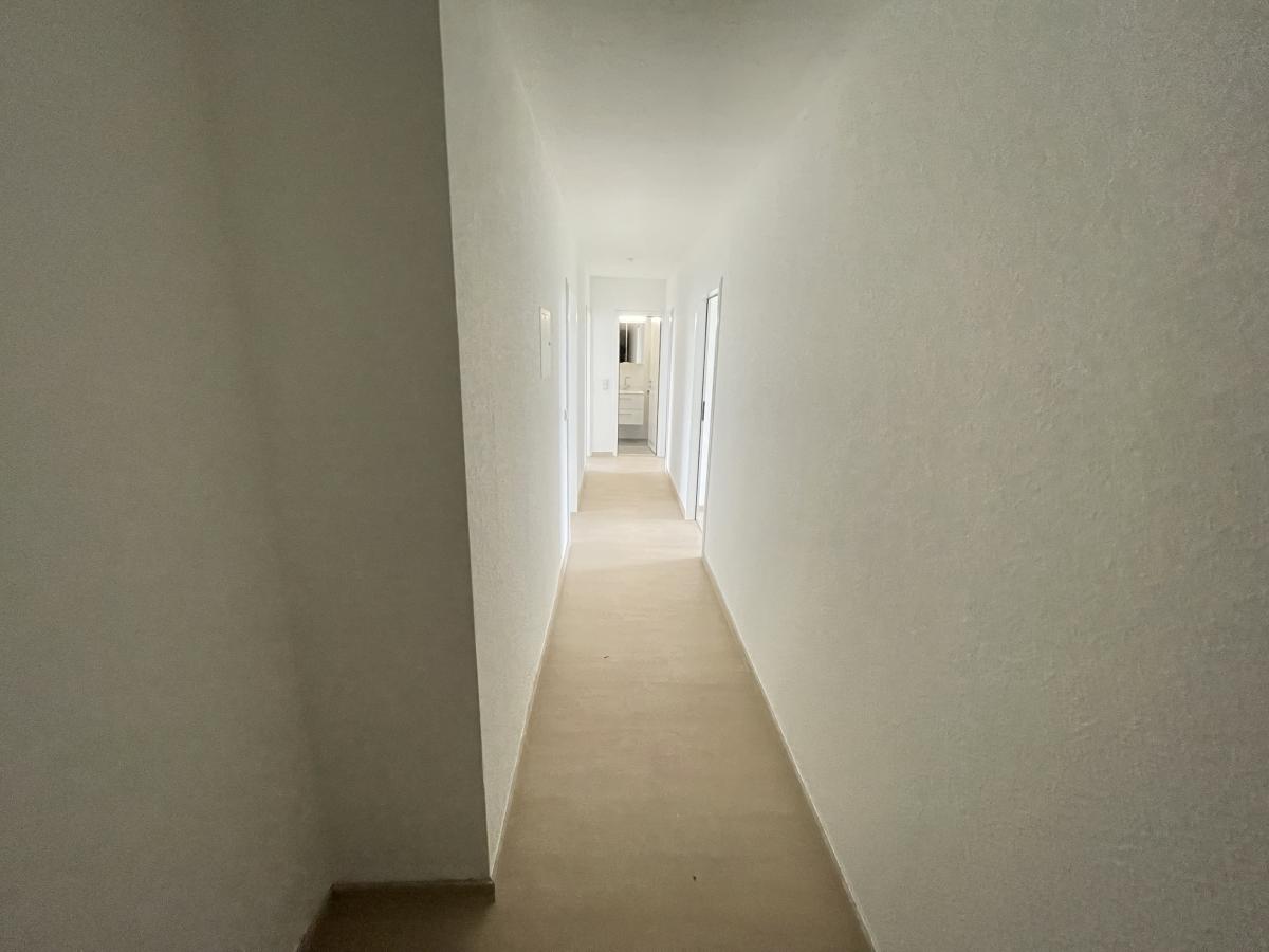 Die Räumlichkeiten sind durchdacht geschnitten und angenehm hell. Geschmackvoller Designbelag in einem warmen Holzton schafft eine freundliche und einladende Raumatmosphäre.