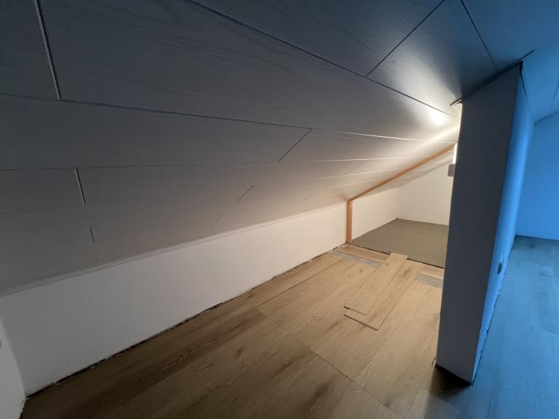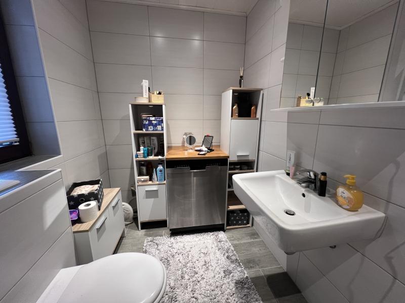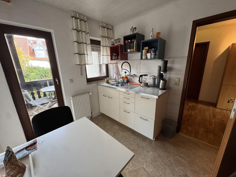 Die Küche verfügt über zwei Fenster und bietet ausreichend Platz für einen Essbereich. Eine Küchenzeile (ohne Kühlschrank) wird derzeit installiert und steht Ihnen bei Einzug zur Verfügung. Freuen Sie sich auf tolle Kochabende mit Freunden und der Familie! Stauraum für Wasserkisten & Co. haben Sie unter der Dachschräge in einer räumlich abgetrennten Nische.